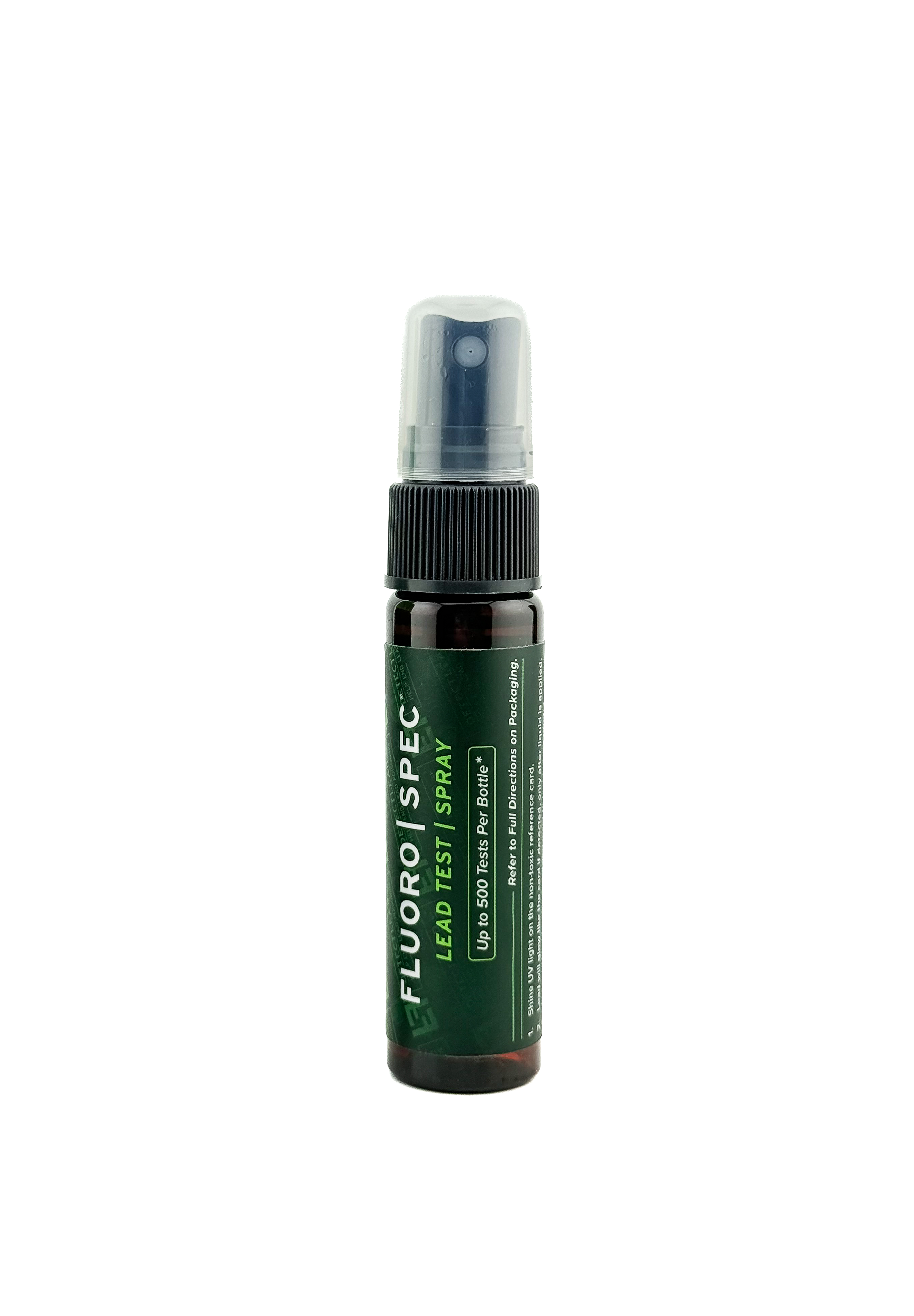 FluoroSpec Kits include Spray Bottle, Drip Tip Bottle, UV flashlight and a non-toxic reference card. Everything you need to find lead in and around your environment.